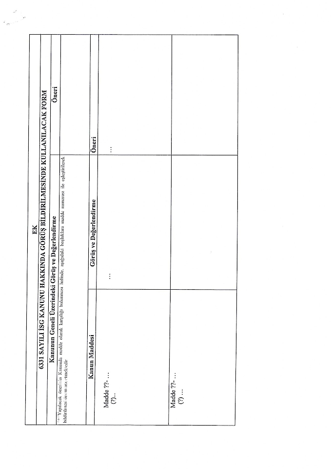 Bu itibarla, Türkiye Odalar ve Borsalar Birliği’ne iletilmek üzere konu ile ilgili, 6331 sayılı İSG Kanununda yapılması gereken değişiklik önerilerinizin ekte sunulan öneri formuna işlenerek 08.01.2020 tarihine kadar Odamıza uzunkoprutso@tobb.org.tr adresine veya 513 22 80 faks numarasına word formatında gönderilmesi hususunu,
