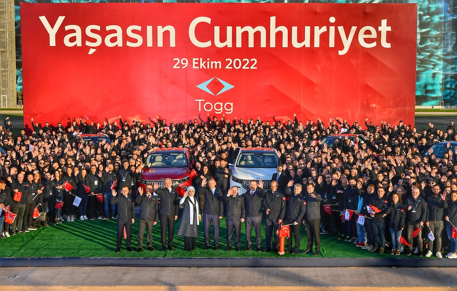 Cumhurbaşkanı ERDOĞAN, TOGG'un önemine vurgu yaparak konuşmasını şöyle sürdürdü: "TOGG, ülkemizin güçlü yarınları için işte bu ortak hayali kurmanın tadını hepimize yaşatan projenin adıdır. Seri üretim bandından indirip sizlerin huzuruna çıkardığımız bu ilk araçla, 60 yıllık hayalin gerçeğe dönüşüne şahitlik ediyoruz. Bir tarafta kırmızı, bir tarafta beyaz. Ne anlama geldiğini herhalde anlıyorsunuz. Bayrakları bayrak yapan üstündeki kandır, toprak eğer uğrunda ölen varsa vatandır. Bunun için 'TOGG, Türkiye’nin, 85 milyonun ortak gururudur.' diyoruz. Ülkemizin dört bir yanından ve dünyanın çeşitli yerlerinden Türkiye’nin yerli ve milli otomobili TOGG'un başarısı için destek veren, dua eden herkese gönülden teşekkür ediyorum. 'Bu bir memleket meselesidir.' diyerek, bugünkü heyecanımıza ortak olan siyasi parti genel başkanlarına, milletvekillerine ve devletimizin her kademesinden arkadaşlarımıza, elbette en başta da aziz vatandaşlarımıza şükranlarımı sunuyorum. TOGG'u seri üretim bandından indirmek için gecesini gündüzüne katan babayiğitlerimizi, teknisyenlerimizi, mühendislerimizi ve emekçilerimizi yürekten kutluyorum. Sizler, milletimizle birlikte Nuri Demirağ'ın, Nuri Killigil'in, Vecihi Hürkuş'un ve Şakir Zümre'nin mirasını da onurlandırdınız. Biliyorsunuz, dün Ankara'da Cumhuriyetimizin yeni asrına damga vuracak Türkiye Yüzyılı vizyonumuzun müjdesini milletimizle paylaştık. Türkiye Yüzyılı' nın ilk fotoğrafı da işte burada hizmete açtığımız tesistir, önünde durduğumuz araçtır." Dedi.