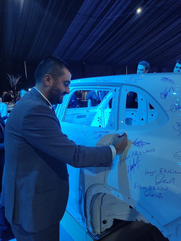 Törenin ardından Uzunköprü Ticaret ve Sanayi Odası Yönetim Kurulu Başkanı ‘’Yeni Ligde Bende Varım’’ diyerek Uzunköprü Ticaret ve Sanayi Odası adına TOGG aracının üzerine imzasını attı.