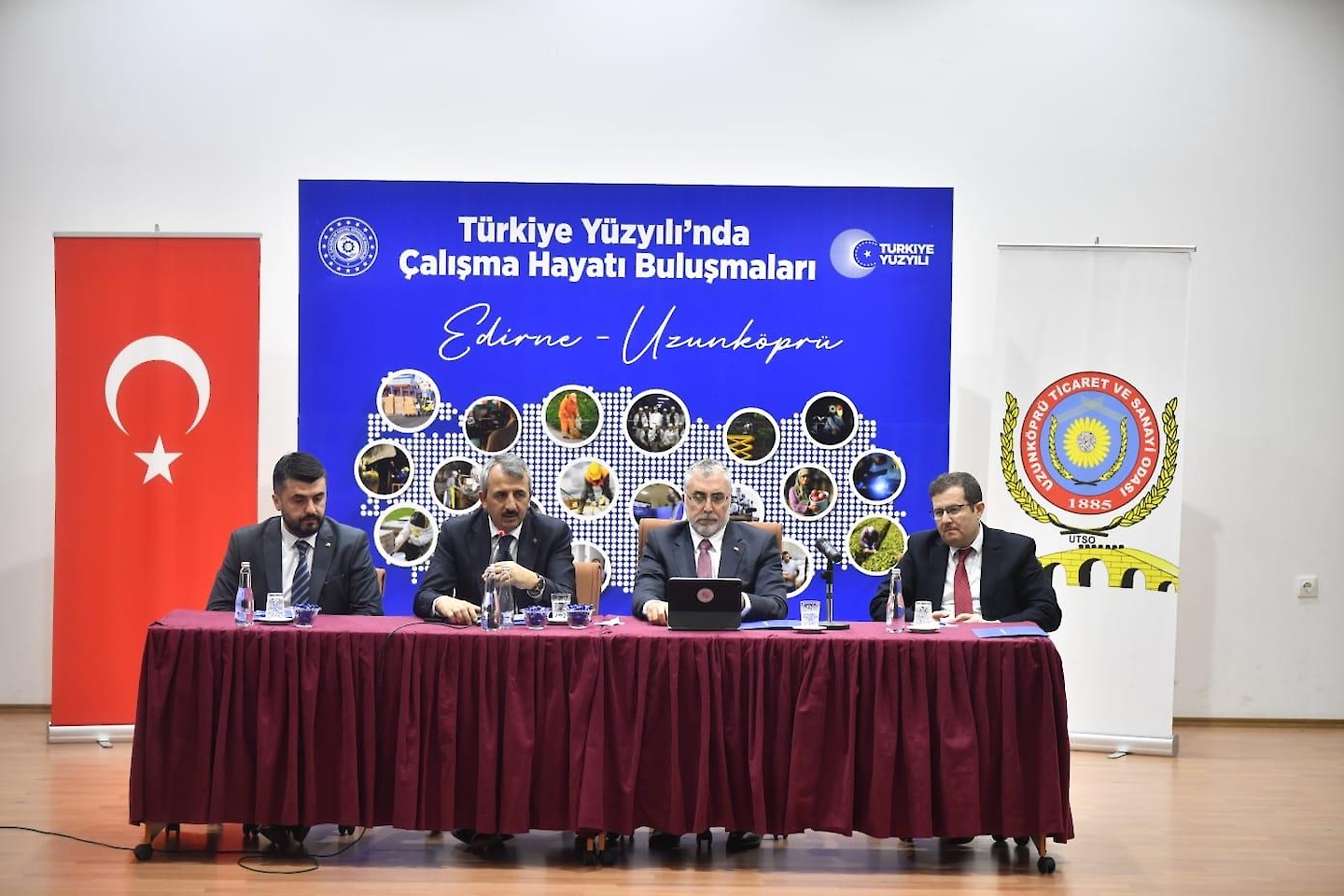 Uzunköprü Ticaret ve Sanayi Odası Yönetim Kurulu Başkanı yaptığı konuşmada ‘’ Sayın Çalışma ve Sosyal Güvenlik Bakanımız Prof. Dr. Vedat Işıkhan, Sayın Valim, Sayın Milletvekillim, Sayın Genel Müdürlerim, Sayın Kaymakamım, Kıymetli Katılımcılar ve Basınımızın değerli temsilcileri, hepinizi odam ve şahsım adına saygıyla selamlıyorum. Türkiye Yüzyılı’nda Çalışma Hayatı Buluşmaları Toplantısı’na hoş geldiniz.