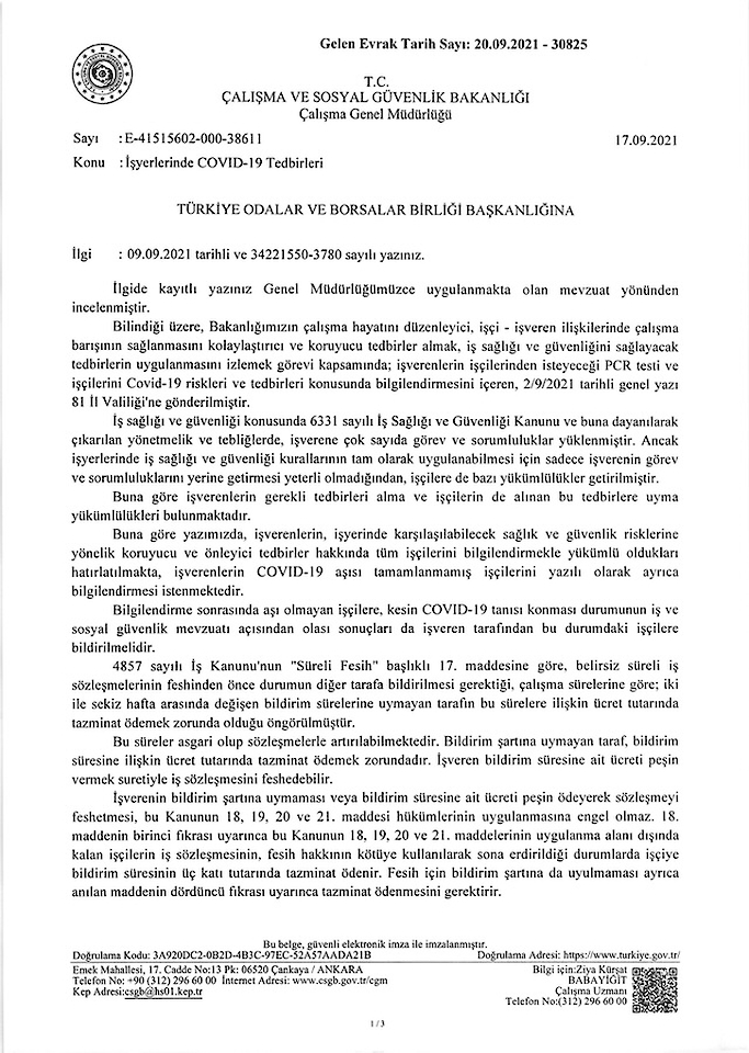 Çalışma Ve Sosyal Güvenlik Bakanlığı'ndan İşyerlerinde Covid-19 Tedbirleri Hakkında Önemli Duyuru!!!