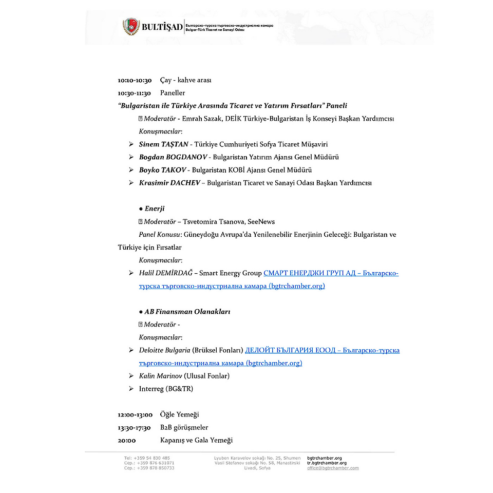 Geçtiğimiz yıl birincisi gerçekleştirilen ve Türkiye İle Bulgaristan’dan 100’den fazla firmanın katılım sağladığı programa bu yıl, özellikle otomotiv yedek parçaları, inşaat ve yapı malzemeleri, metal, makine,kağıt,mobilya,enerji,gıda,IT,danışmanlık,tekstil,sağlık,kimya-kosmetik,plastik eşya, iklimlendirme, turizm sektörleri başta olmak üzere, diğer birçok sektörde faaliyet gösteren firmaların katılması ve önemli iş birlikleri beklenmektedir.