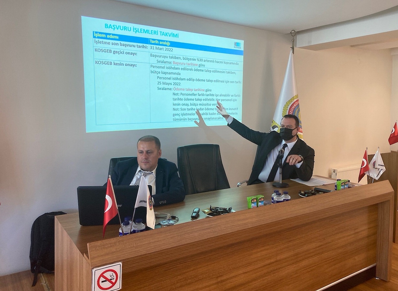 Toplantıda KOSGEB yetkilileri 31 Mart 2022 tarihine kadar başvuru süresi olan ve genç istihdamı teşvik eden 2 yıl geri ödemesiz 100.000 TL faizsiz kredi olanağı sağlayan MKİ Hızlı Destek Programı hakkında bilgilendirmelerde bulunularak katılımcıların soruları yanıtlandı.