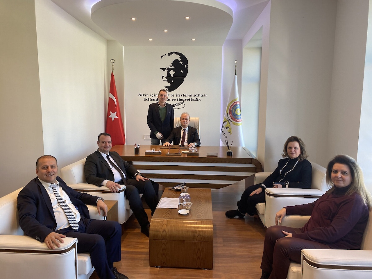 Toplantının ardın KOSGEB yetkilileri UTSO Yönetim Kurulu Başkanı Ercan İHTİYAR’ ı makamında ziyaret ederek misafirperverliklerinden dolayı teşekkürlerini iletti.