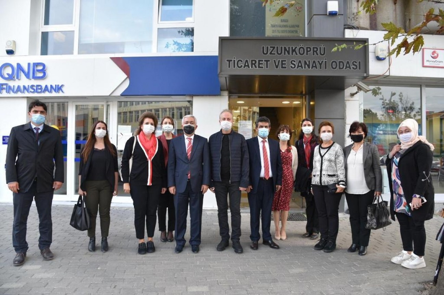 20 Ekim 2020 Salı günü Ticaret Bakanlığı Esnaf Sanatkârlar ve Kooperatifçilik Genel Müdürlüğü Daire Başkanı Yavuz Selim Akçakale, Edirne İl Ticaret Müdürü Mahmut Altun ve kadın kooperatifi yöneticileri ile Uzunköprü Ticaret ve Sanayi Odasına ziyarette bulundular. Uzunköprü Ticaret ve Sanayi Odası Yönetim Kurulu Başkanı Ercan İhtiyar ev sahipliğinde gerçekleştirilen ziyarete UTSO Meclis Üyesi ve Kadın Girişimciler Kurulu Üyesi Selma İhtiyar, TOBB Edirne KGK İcra Komitesi Başkan Yardımcısı Seval Gemici, TOBB Edirne KGK İcra Komitesi Üyesi Sevim Adalı iştirak etti.