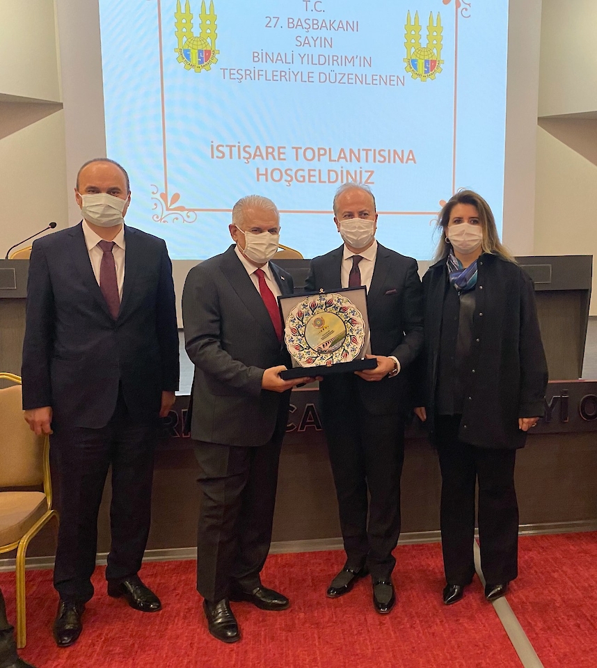 Toplantının sonunda Başkan Ercan İHTİYAR, Sn Binali YILDIRIM’a Uzunköprü’nün resminin bulunduğu çiniyi takdim ederek, kendisini ilçemize davet etti.