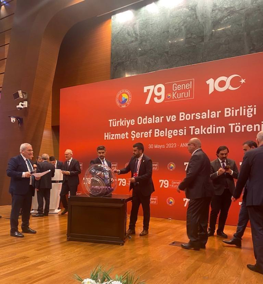 TOBB 79. Genel Kurulu birinci günü Cumhurbaşkanı Sayın Recep Tayyip Erdoğan’ın teşrifleriyle gerçekleşen “Hizmet Şeref Belgesi Takdim Töreni” ve TOGG için başvuruda bulunan oda borsalar arasında sıra çekilişi gerçekleştirildi. Çekilişe Uzunköprü Ticaret ve Sanayi Odası adına Yönetim Kurulu Başkanı İsmail AKALIN katılım sağladı.
