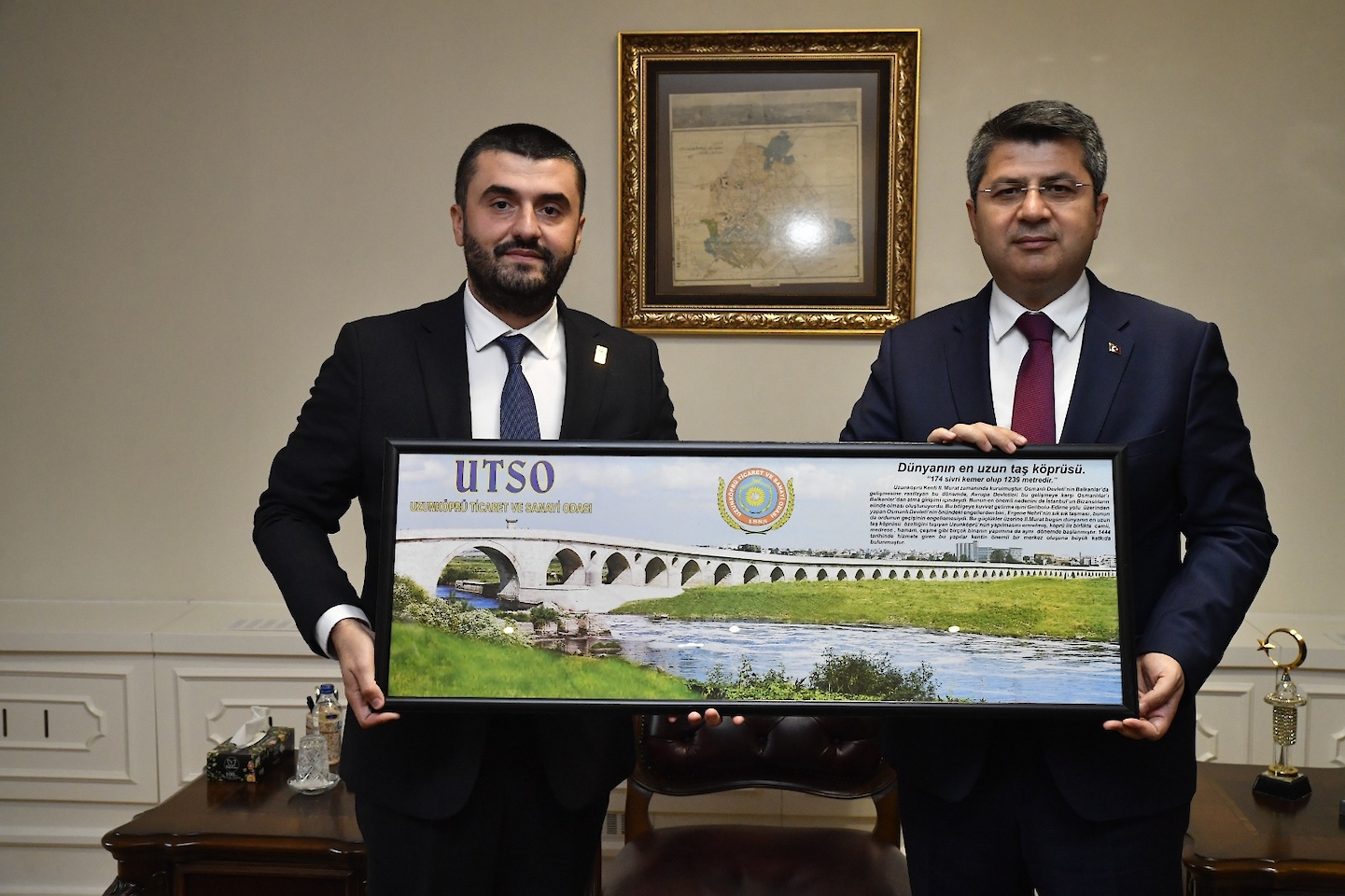 Uzunköprü Ticaret ve Sanayi Odası organ seçimlerinin ardın göreve gelen Uzunköprü Ticaret ve Sanayi Odası Yönetim Kurulu Başkanı İsmail AKALIN, Yönetim Kurulu Üyeleri Atacan AKDEMİR, İnanç SÜLÜŞ, Meclis Üyeleri Özge ERGEN,Hüseyin TÜRKKAN,İsrafil BAŞ,Ömer ÇOTRA,Mustafa ALAŞ,Rıdvan TAYLI,Yılmaz ARI ve Genel Sekreter Hasan H. KÜÇÜKKAPTAN, Edirne Valisi Hüseyin Kürşat KIRBIYIK’ı makamında ziyarette etti.