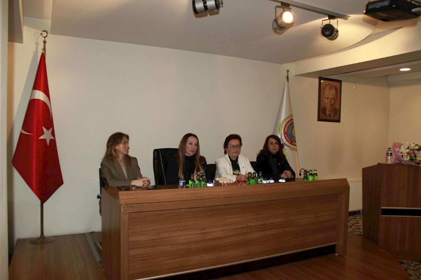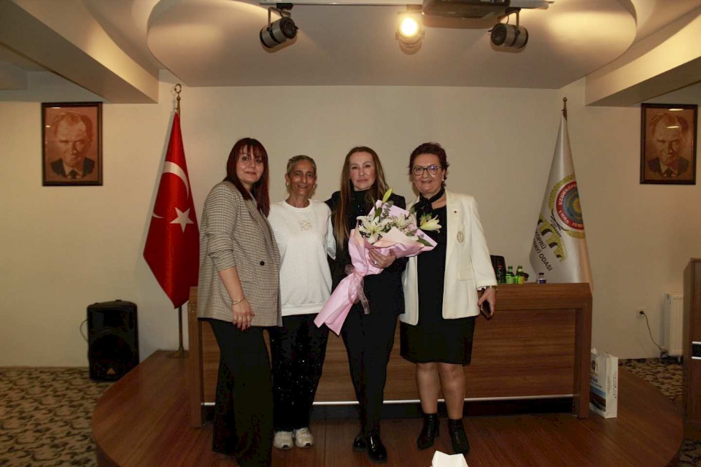 Ev sahibi olarak TOBB Edirne KGK Başkan Yardımcısı Sevim Adalı, Kurul Üyesi Püren Alaş ve UTSO Meclis Üyemiz Özge Ergen, Sayın Aslan’a çiçek takdiminde bulundular.